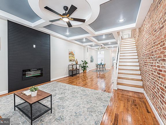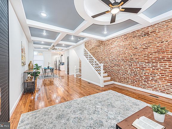 SPECTACULAR AND GRAND RESERVOIR HILL RENOVATION WITH APPROXIMATELY 3,500 SQ. FT. OF LIVING SPACE! Features include gleaming hardwood flooring and coffered ceilings throughout the main level, a spacious living room with exposed brick & electric fireplace, a gourmet island kitchen with Quartz counters & ss appliances, a convenient main level half bath, 2nd level with 3 bedrooms and 2 full baths including a bedroom suite, an expansive Primary bedroom suite on the 3rd level with an electric fireplace, exposed brick and incredible spa bath with a stand alone soaking tub and glass enclosed shower, a finished basement with a generously sized family room, 5th bedroom, and a full bath, and a rear deck overlooking a patio with a gated parking pad! Located steps from Druid Hill Park and all of the amenities it offers including a public pool, walking/jogging paths, disc golf, basketball & tennis courts and more. This home truly has it all!