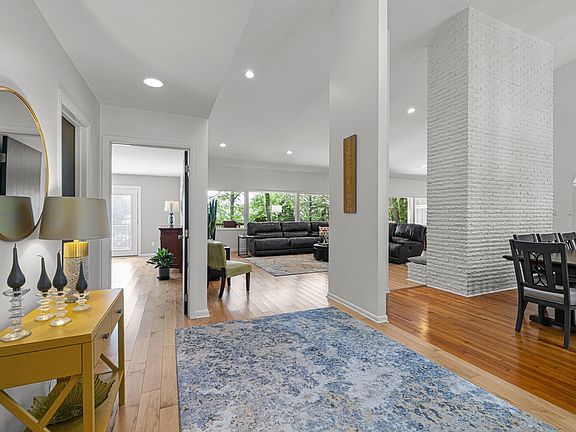 This stunning contemporary one-level split floor plan home has 3 bedrooms, 3 bathrooms plus an office. The almost acre lot is on the 15th Fairway with absolutely breathtaking views and NO HOA! Features include vaulted ceilings, hardwood flooring, tons of natural light, closets galore (double closets in each bedroom and a walk-in closet in the primary), and a grand and modernized brick gas fireplace. Be sure to check out the updated kitchen which offers granite countertops, a pantry, soft close drawers and even a gas stove. The back deck overlooks a flat fenced in yard with beautiful landscaping. The oversized 2 car garage includes a workshop and even has 2 large unfinished rooms for storage above the garage. New roof in 2020, new water heater, and vapor barrier in the crawl space.