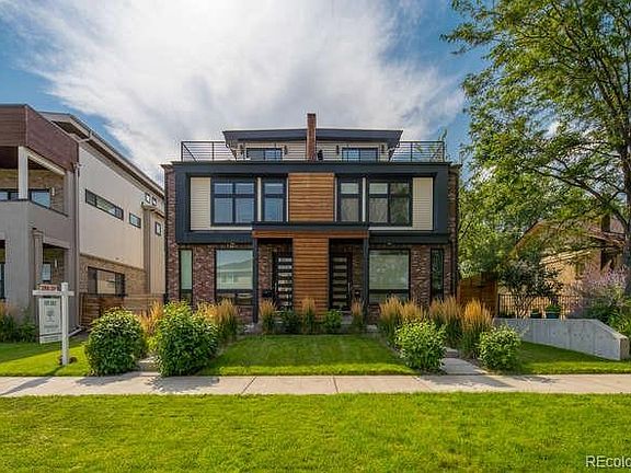 Perfect South-Side 1/2 duplex in awesome Sloan's Lake location walkable to the lake, a block from Brown Elementary, and near all the incredible action that NW Denver offers. Easy access to I-25 and near to downtown. This 4 bed/5 bath home was built in 2016 with modern design and finishes. The layout of the home checks all the boxes with an incredible kitchen/living/dining on the main level featuring a fireplace and new lighting. A living room garage door opens to the back yard with a new 400 sq. ft. deck providing an open-air feel. The 2nd floor has master suite with new hardwoods and includes a 5-piece bathroom. Guest bedroom with full bath also on 2nd floor. 3rd floor has very useful office area or rec room along with a roof deck that has city views in the winter and shoulder seasons. The basement features 2 beds and a full bath. 2 car detached garage enters off alley.