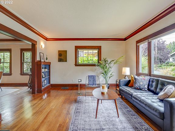 Charming bungalow in Rose City. Welcoming porch leads you into the LR w/original woodwork, hardwoods + blt-ins. DR w/box beam ceiling. Updated kit w/granite, SS gas appl, nook + ext access. Main level primary w/dressing rm/office/nursery. 2nd bedrm + full ba w/soak tub + tile round out the main. LL has NEW carpet, 3rd bedrm, laundry rm, spacious FR, full ba w/shower, ext entrance."Potential" for Airbnb, sep livng qtrs. Great fenced yard w/greenhouse, stone patio + gardens. [Home Energy Score = 4. HES Report at https://rpt.greenbuildingregistry.com/hes/OR10205424]
