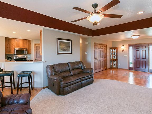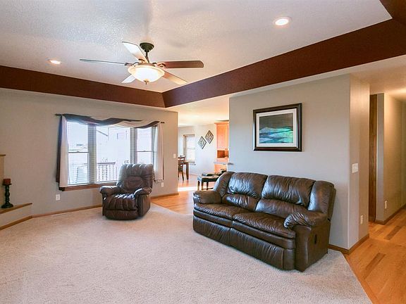 Well maintained, sprawling, five bedroom home with office (includes closet). Main floor features: Open foyer with granite floor accent , living room with FP and tray ceiling. Kitchen with hardwood floor, walk in pantry, stainless steel appliances and solid surface counter/breakfast bar. Formal dining with matching hutch and patio door to private deck. Master bedroom with tray ceiling his/her closets-bath with molded sinks, tiled shower, tub with jets, heated tiled floor.