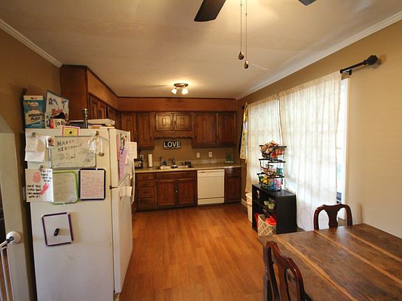 Solid 3br, 2ba brick home on large level fenced-in lot. Well laid out plan with laminate hardwood throughout. Nice living room, kitchen with dining area, big utility room, and nice size bedrooms. Bathrooms have been updated, as well as paint, flooring, and lighting fixtures. Wonderful sunroom on the back, currently used for extra storage. Awesome outbuilding with electric that could make a perfect workshop! Impossible to find at this price and in a 100% financing approved area!