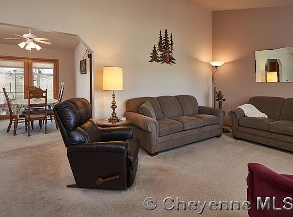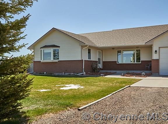 Immaculate close-in rural home, north location just minutes from Cheyenne. Ranch-style home with 3 bedrooms, 3 baths, formal dining, 2 car attached garage plus a detached 30'x40' outbuilding well suited for a workshop, garage, or barn all on 10+ fully fenced acres. Inviting south facing sunroom, perfect for enjoying a morning coffee. Full unfinished basement for storage galore. Beautifully maintained landscaping with sprinkler system and mature tree row.