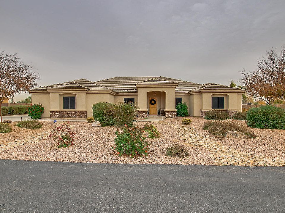 Welcome home to one of Buckeye's BEST horse properties on an acre. This beautiful 4 bedroom home features soaring ceilings, custom tile flooring throughout, knotty alder doors, & ceiling fans in all the bedrooms. Spacious eat in kitchen with granite counters, S/S appliances, breakfast bar, & plenty of upgraded cabinets. The master bathroom features a walk in closet, double sinks, huge soaking tub and gorgeous snail shower. Other bedrooms are split with guest suite with it's own bathroom & the others have a Jack & Jill bathroom each with separate sinks. Fire sprinklers for safety. The amazing backyard has extended covered patio, basketball court, double RV Gate with additional parking area, sparkling pool & spa, fantastic for entertaining family & friends. Close to I-10 freeway and NO HOA!