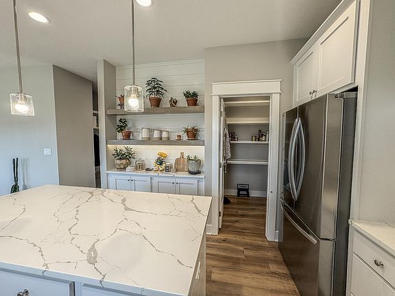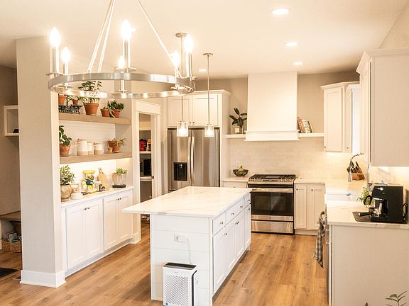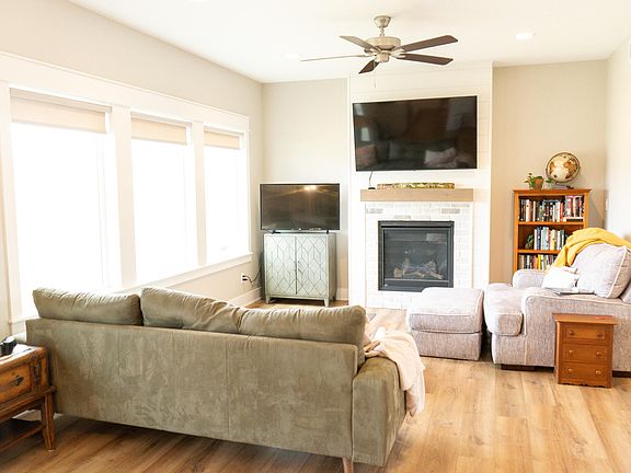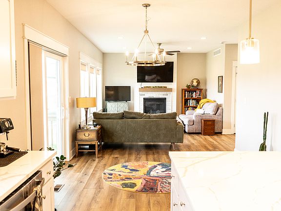Step into the large living room featuring gas fireplace, perfect for gathering with family and friends. The open concept kitchen is complete with gas range, oversized island, generous walk in pantry, newer appliances, and plenty of space for meal prep or casual dining.