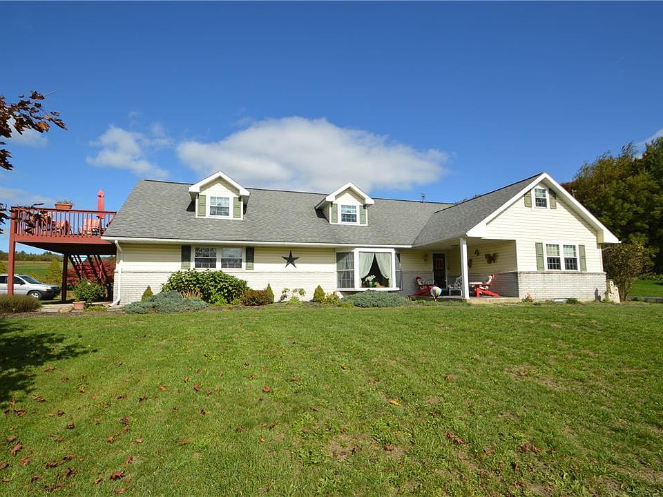 Picturesque views everywhere you look! Wonderful 5 bedroom oversized Cape Cod situated on a beautiful 5 acres in Palmerton. Detached rear building includes vacant 2 bedroom apartment above an oversized 2 car garage. Main home features eat-in kitchen with access to covered back patio, bright living room with big bay window, 3 bedrooms and full bath. Upstairs has 2 bedrooms, ample closet space, full bath and large unfinished room with access to deck. Unfinished room has amazing potential for extra bedroom or office space. Built in garage and plenty off-street parking. Your dream backyard features space for gardening and separate patio pavilion for outdoor entertaining. Countryside living at its finest! Go for your showing today.