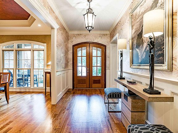 Luxury living in exclusive Trenton Place. This custom 5 bed, 4.5 bath Energy Star-certified 2007 Parade Home is a haven of sophistication, nestled just steps away from Umstead. The main floor features a primary suite with spacious bedroom, private porch entrance, spa-like bath, and a large walk-in closet. Additionally, a guest suite on the main floor with private bath ensures your visitors are treated to the same level of style and comfort. The thoughtfully designed open chef's kitchen keeps you seamlessly connected to the heart of the home. The three-car garage, and multiple walk-in attics provide ample storage and potential for addtl sq footage. Step into the backyard oasis, a sanctuary with well-manicured grounds, complete with irrigation and landscape lighting. Savor your morning coffee on the screened-in porch, complete with built-in speakers, or host evening gatherings around the outdoor wood-burning fireplace. This home's prime location next to Umstead Park and its proximity to shopping and dining strike the perfect balance between serenity and convenience. Don't wait, schedule today!