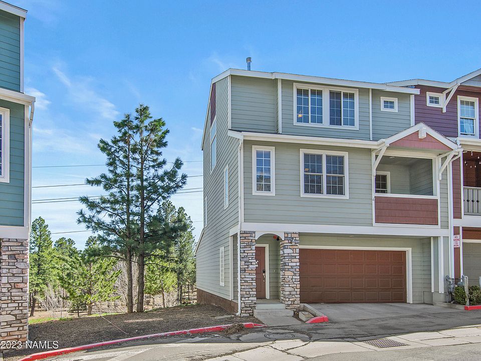 This beautiful townhome, located on the west side of Flagstaff, is a perfect blend of modern design and comfortable living. With 3 bedrooms and 3.5 bathrooms, each bedroom features its own en suite bathroom for added privacy and convenience. The end unit allows for plenty of natural light, illuminating the spacious living areas throughout the day. The two balconies provide perfect outdoor spaces to enjoy the mountain views and fresh air. Located just 1.5 miles from Northern Arizona University and 2.5 miles from downtown Flagstaff, this home is conveniently situated for both work, school and play. You'll also appreciate the nearby shopping centers, offering easy access to all your daily necessities. Don't miss your chance to own this beautiful townhome in a prime location in Flagstaff!
