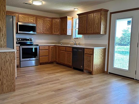 Welcome to 24155 Sweet Lane! Located less than 2 miles from the I-44 Buckhorn exit, this is an easy drive to Fort Leonard Wood, I-44 and shopping. Enjoy the long drive, passing by a gazebo with sweeping views of the Ozarks, up to a covered front porch where you can easily rest on the benches and enjoy the breeze. Head inside to a spacious living room, connected to dining and kitchen. The kitchen includes new appliances and wood cabinetry. Dining area includes access to the backyard, as well as access to the two car garage. Down the hall, the laundry closet is easily accessible to all bedrooms. Primary suite includes tub/shower combo. Two additional bedrooms and one full bathroom complete the living space. Head outside to a FLAT yard, with over 4 acres to run and play! The home has been freshly painted, has new solid surface flooring and is MOVE-IN READY!