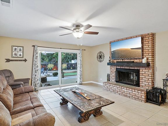 Price improved! Welcome home to this beautiful property in the heart of San Diego Country Estates! Large, single story, ranch style home has room for everything! At just over 2,500 sqft this home features 4 spacious bedrooms and 2 bathrooms. The kitchen features a prep island, breakfast bar, granite counters, stainless steel and hardwood cabinets. The generous living and family room will fit all of your furnishings and share an attractive double sided fireplace. Recent updates include fresh exterior paint, and vinyl windows & doors. The backyard has an expansive patio with Alumawood patio cover, hot tub, and bbq area. The backyard also features a firepit area, turf, dog run and an amazing fence mural. The side yards are both wide enough to store toys, boats and RVs. Solar Purchase power agreement locks in low price energy all year long. Walking distance to Barnett Elementary and 10 minutes to downtown Ramona. Experience all the Country Estates has to offer including the clubhouse with a restaurant, sports bar, event space, boutique hotel, 18 hole golf course, tennis and pickleball courts, and a community pool and spa. The community also provides a vast trail system for horse riding, biking, or hiking, and a 5-acre community park with a second pool, bandstand, and grassy areas for picnics and events. Don’t miss out on this unique opportunity!