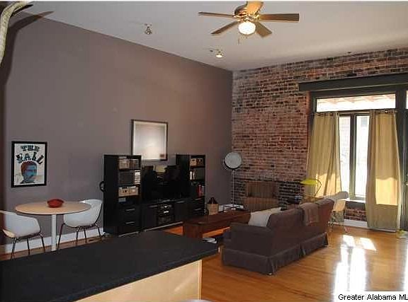Don't miss out on this gorgeous main level loft that has everything you could ask for. Two large bedrooms with walk-in closets, bathroom with dual sinks, hardwood floors, exposed ducts, exposed brick wall and high ceilings. Showcasing the kitchen are stainless appliances, granite counter tops, and breakfast bar. A gated entrance with one assigned parking space -- a few feet away from the front door for easy access. Located in the heart of the Loft district! Relax on the roof top deck and enjoy the beautiful views of downtown and Red Mountain. Enjoy the downtown lifestyle with all the new restaurants, shops, bars,and Railroad Park. Square footage is 1349(per tax records). Renter is responsible for the electric bill. Water, and garbage pickup are included in rent.