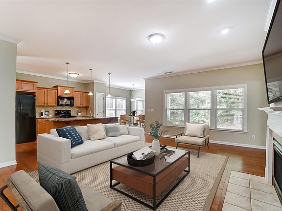 Tega Cay living, fabulous amenities, Fort Mill Schools- this home has it all. Located in the sought after community of Lake Ridge. Spacious primary suite on main level also has an attached office beautifully accented with french doors. The open floor plan is perfect for gatherings and entertaining family and friends. Large center island, double pantry, granite countertops, tons of cabinets. Hardwood flooring in all main living areas. Second bedroom and full bath located on main level. The huge bonus room upstairs is ready for play, movies, a home gym or private office. The third bedroom and full bath finish the second level. Enjoy the privacy of a covered patio and tree lined back yard. HOA covers exterior landscaping and yard maintenance. This is not an age restricted community.