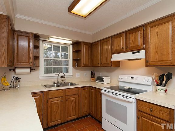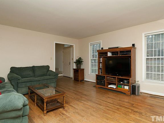 Over 1 acre and NO HOA! Close to Brier Creek and RTP. Private wooded view from deck and screened porch, fenced back yard. Hardwood floors in entry, living room, kitchen, and dining room. Brand new kitchen remodel open floor plan with induction cooktop island and all new kitchen appliances. All bedrooms on 2nd floor: spacious master, large bedroom/bonus room plus 2 more bedrooms. Unfinished walk-up attic provides lots of storage. 2-car side entry garage. 1/2 acre lot directly behind property is included in total acreage.