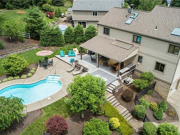 An amazing custom built contemporary home on a .5 acre level lot on a cul-de-sac lot in Hampton! Wow, vacation at your own home with friends and family with the kidney shaped inground pool, mineral spa hot tub, bar and 40x37 trex deck! The double door entry leads you to a catherdral ceiling foyer and living room with a beamed ceiling, windows flooding the home with natural light. The spacious kitchen has plenty of workspace, wine refrigerator, all appliances include, separate breakfast area opening to the outside area. Three large bedrooms, master is 20x15 with a large remodeled bath with a whirpool tub, 8 foot vanity, ceramic tile, skylights and more. Two additional bedroom with a jack and jill bath. First floor laundry and a den for the home office needs. Entertain in the large 18x13 dining room. The lowere level gameroom has a bar, pool table & storage. Newer roof, siding, a/c, furnace, updated ktchen, baths, gargare door, skylights and more. Award winning Hampton Schools!