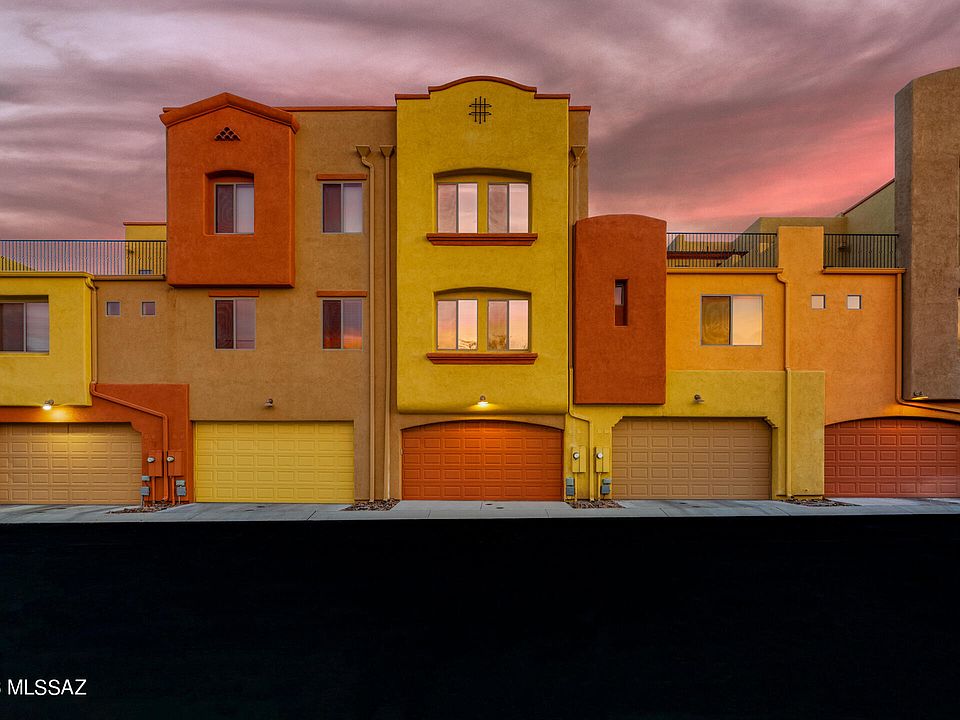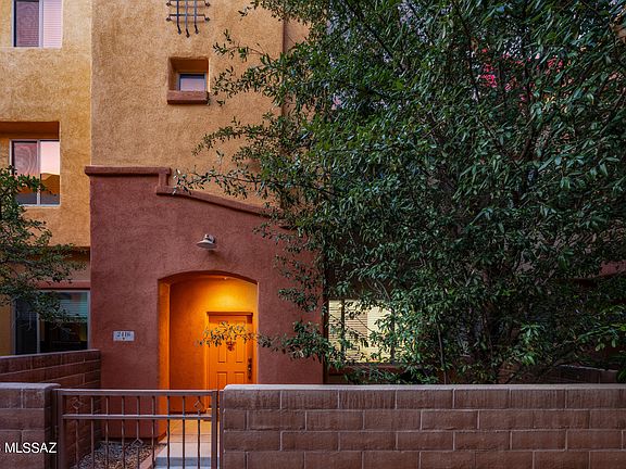 Highly sought after Urban Chic townhouse in gated RIVER WALK. 3 story well appointed home features granite counter tops, upgraded fixtures, 3 bedrooms on first two floors. Large bonus/rec room on 3rd floor features a wet bar, and INCLUDES a nearly new flatscreen TV with professional media/surround sound package. ALL furniture conveys except the first floor staging. Large PRIVATE open sky/rooftop patio! Access to community pool, spa, clubhouse, and fitness center. Location location! Close to UA, Downtown, River Walk trail, shopping, and dining. Bring your pickiest buyers. Home is pristine and freshly painted.