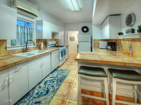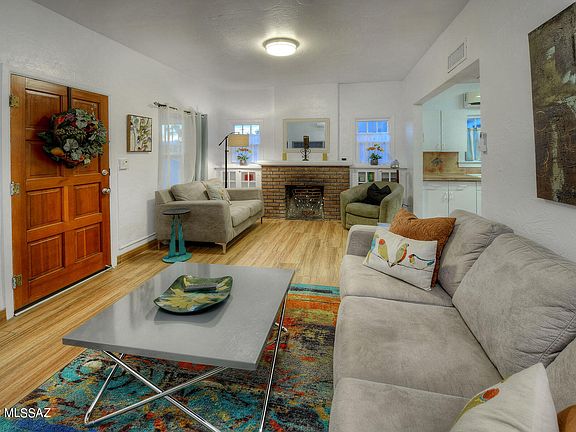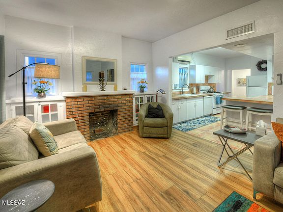 Real Tucson gem located in the Historic Blenman Elm neighborhood! This updated 1958 classic is rich with character, charm & all the modern conveniences. Fantastic floor plan offers 2 bdrms each w/ Remodeled ensuite baths & powder room off LR. 1 BR/1 Full Bath 405 sq ft Guest House (3 years old). Plenty of natural light w/ New Windows throughout. Kitchen boasts ample cabinet & counter space w/ a lovely cozy dining area. All furnishings are included. From front to back, this home flows seamlessly. Already a thriving VRBO, this home is ready to plug & play a new owner. Guest quarters would be great for rental income or visiting relatives. Enjoy convenient urban living w/ proximity to bus stops. Close to UA, Banner, Historic Az Inn & downtown, this home exudes exceptional Tucson charm.