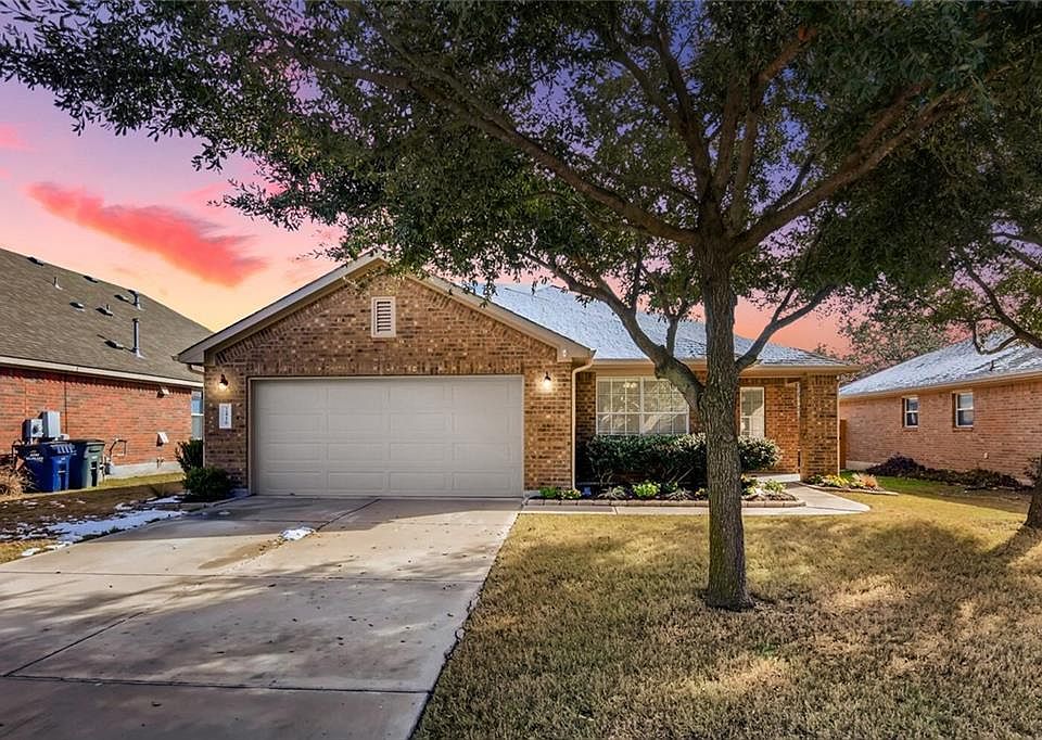 Beautiful three bedroom, two bathroom home Cold Springs neighborhood, Leander. Feel welcomed with the large front yard and tall shade trees. Vinyl plank flooring throughout the house & NO carpet. The living room is bright and airy with high ceilings, flowing seamlessly into the kitchen and breakfast area. This kitchen features granite counters, a breakfast bar, tile backsplash, gas cooking, and a center island - perfect for your resident chef. This home also features a formal dining area. This house has a dedicated office that can be used as a flex space - virtual school area, media area - your choice! The Primary bedroom is spacious with high ceilings and an abundance of natural light! Ensuite bath w/ double vanity, a luxurious soaking garden tub, separate shower, and walk-in closet. The guest bedrooms are spacious and bright, featuring ceiling fans and walk-in closets. Relax under your covered patio in the backyard. This lovely home is situated in the highly coveted area of Leander ISD. Great location! Close proximity to Lakewood Park, shopping, grocery stores, food, and more.