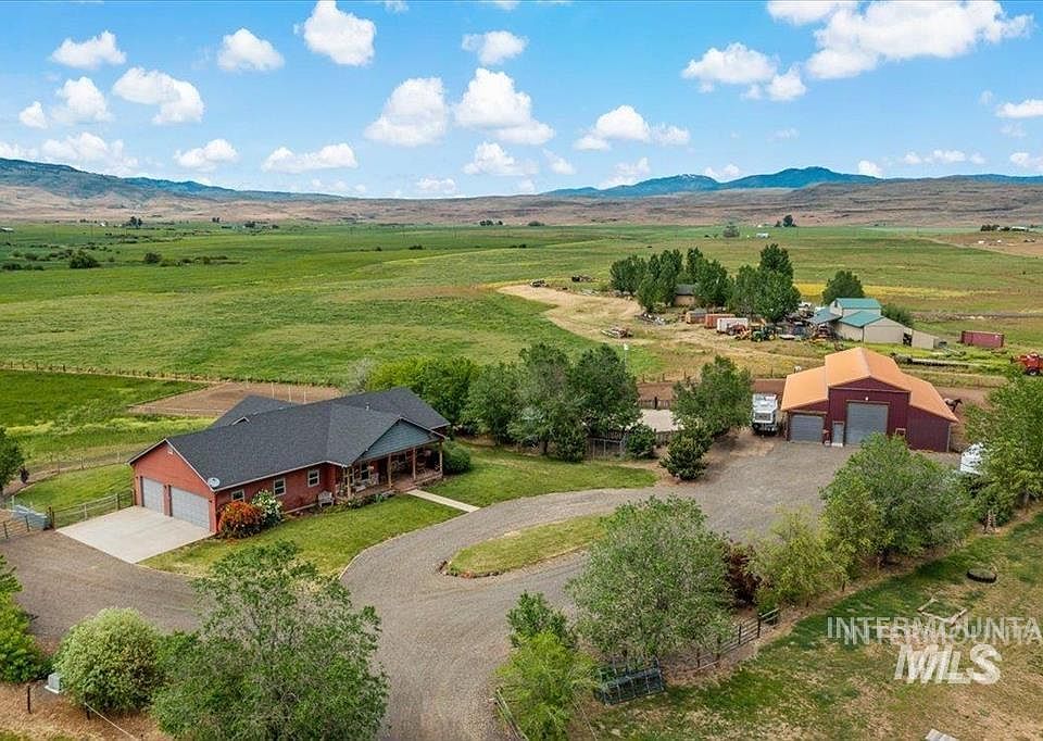 Custom built home designed for the horse enthusiast! This beautiful home was built w/ luxury in mind with stamped concrete patios, blue pine cabinetry, and a lovely granite slab kitchen island. The open kitchen features stainless built-in appliances & pull outs in all lower cabinetry. Step down into the great room that looks out to far-reaching, west facing views. The master suite features a lovely his & her set up with dual vanities, a walk-in tile shower, and a wrap-around closet that goes on and on! Step outside to the 48x70 multi-purpose shop/barn with 2 separate heated shop spaces, one with a 1/2 bath and the other with 220 vlt power. The horse set up includes a barn tall enough for hay delivery, tractor storage, 3 - 13x20 foot matted stalls, dry lot with red cinders, 84x126 arena, 60' round pen, auto waterers, fencing & paved RV parking w/ water, sewer dump, and electric plug-in. Approx 15 acres of tillable ground, seasonal pond typically w/ water until late summer, & a deluxe chicken coop & run.