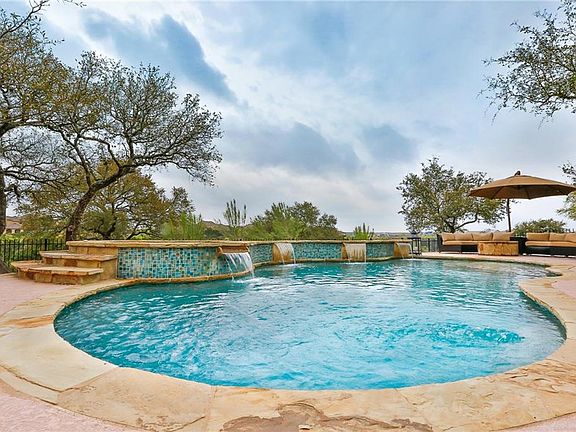 This luxurious home offers resort living and 4,712 square feet of interior bliss! Saltwater pool with 3 waterfalls, spa, golf course view, outdoor kitchen & fireplace, covered porch, extended patio, & outdoor speakers, 4 bedrooms, 4.5 baths, 2 dining areas, dedicated study, game room, media room, sun room. Gourmet kitchen has 2 islands, double ovens, 6-burner Kitchen Aid range, upgraded cabinets. Soaring ceilings, 2 staircases, hardwoods, gorgeous master bath, wine cabinets, built-ins, cantera front door.