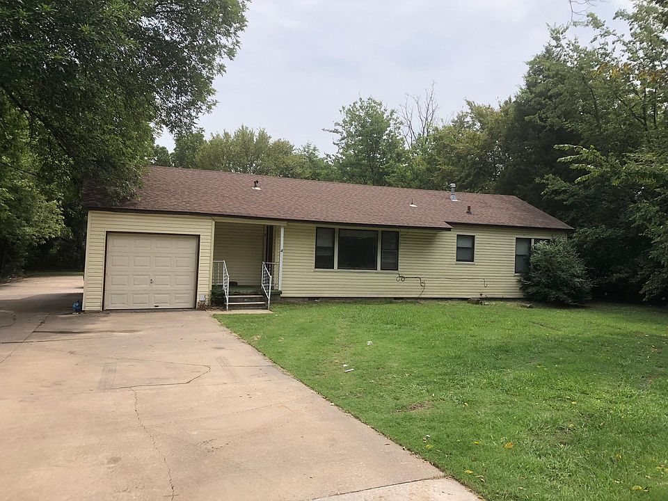 3 bedroom 1 bath 1 car garage with fenced in back yard, carpet and tile, mini blinds, ceiling fans, cute kitchen with stove dishwasher, utility room with washer dryer hook ups, electric water tenant pays, close to McDonalds, Walmart, UAFS