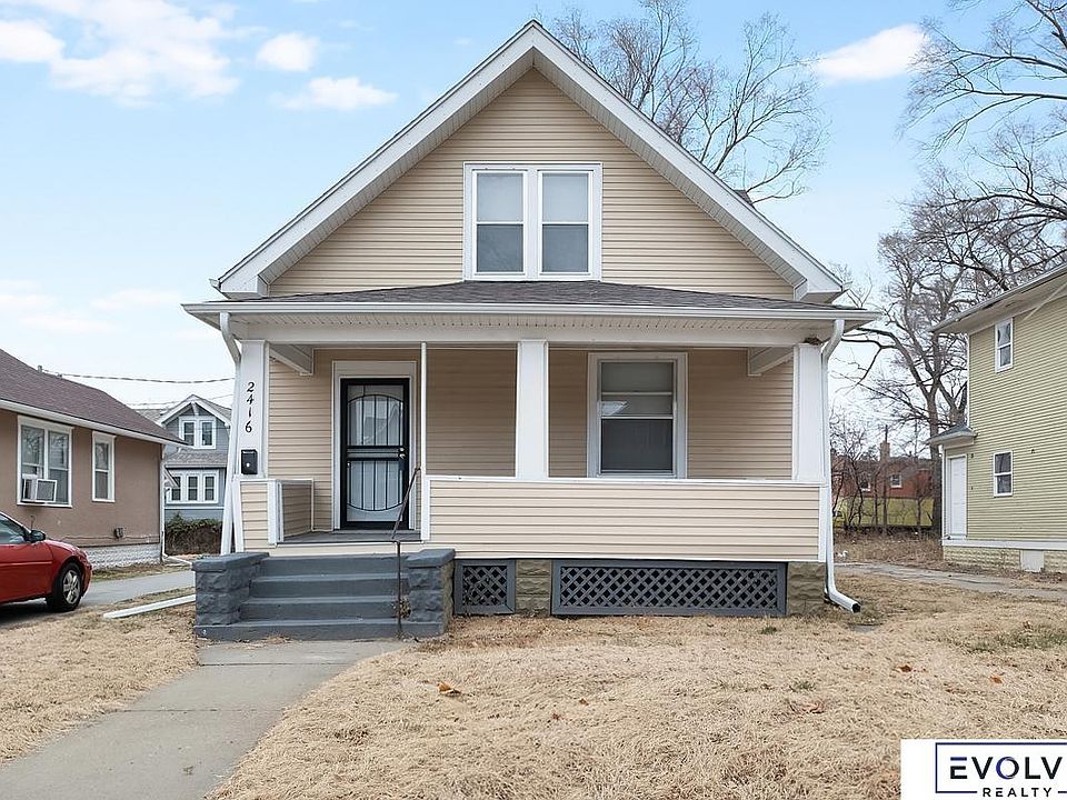 Welcome home! This 1.5 story home is ready for new owners. The main floor features hardwood floors throughout the entry, living room and dining room, a half bathroom and kitchen with LVT flooring! The half story includes all three bedrooms and a full bathroom. Unfinished basement with plenty of potential for extra living space. Covered porches in the front and back of this home! Don't wait - schedule your showing today!