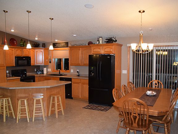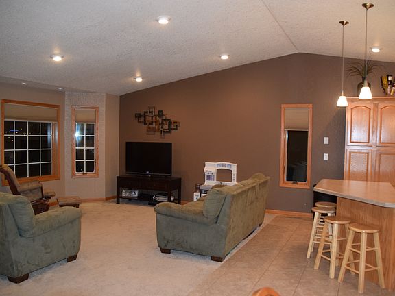 Beautiful 3,200 Sq Ft split-level home with a 3 stall garage, steel siding and no backyard neighbors. The entry way has an open ceiling, a large closet and a mudroom with an additional closet, giving the house a more open feel when you walk in. Upstairs you will find a cathedral ceiling with an open concept. The large living room opens to the kitchen and dining room. There is a semi-covered maintenance-free deck with stairs off the dining room that looks out to the prairie. Also upstairs is the master bedroom suite, 2 additional bedrooms, a full guest bathroom and a hall linen closet. The walk out basement has a big family entertaining space with a full wet bar that has heated tile, a game area, 2 additional large bedrooms and a full bathroom. There is also a large laundry room, hall linen closet and mechanical room downstairs with storage space. And, extra storage under the stairs/entry way. The backyard has a cement block patio, a shed and a beautiful view without backyard neighbors, since it is on the north edge of town. This house features a new water heater, a new dish washer and new carpet upstairs. The garage is heated and the furnace is a dual zone. Additional features: audio system, alarm system, sprinkler system and Anderson windows.
