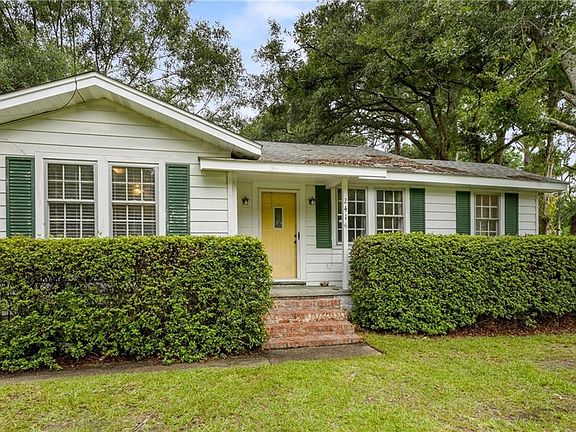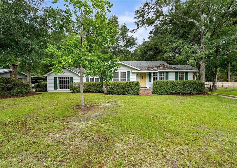 Located not far from McGowan Park, where shopping and restaurants are plentiful along with easy access to I-65 and I-10 this home is ready for new owners. Freshly pressure washed, the sparkling home provides an abundance of living options. Step into the open kitchen on the left featuring a large granite topped breakfast bar/center island where early morning breakfast or afternoon snacks can be enjoyed. Appliances, including the gas stove, are stainless, cabinetry is white, and granite graces the counter tops all making meal preparation a breeze. Open to the kitchen and to the right of the front door is a spacious dining room where more formal meals can be lingered over and enjoyed. Just beyond the dining area a barn door that separates an office/playroom/craft room or man cave - whatever fits the family needs. A couple steps down from the kitchen is an open area that would be a great space for an office or a sitting area where a good book can be enjoyed in a favorite recliner. Just beyond is the family room with a gas log fireplace to ward off those rare cool southern evenings. (Gas is currently disconnected.) There is a full bath convenient for family and visitors off the family room. Behind the family room is the spacious laundry/mud room/drop zone for coming in from the two-car carport via the covered breezeway. On the opposite wing of this great home are two nice sized guest bedrooms, one with a walk-in closet, a guest bath, and the primary bedroom with new laminate flooring, his and her closets and an ensuite half bath. There are pretty hardwood floors in many rooms, laminate in the primary bedroom, brick in the kitchen and tile in the wet areas. There is a workshop off the carport and another outdoor building, great for storage, along with a patio all on almost ¾ acre. The seller states the roof is 4 years old and the HVAC is about nine years old. Per the city map, this home is not located in a flood zone.