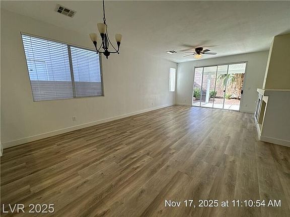 Location meets lifestyle in this charming single-story Green Valley home, ideally positioned off Pecos and Windmill for unbeatable convenience. Just minutes from shopping, dining, entertainment, and freeway access, this home blends comfort with accessibility. Inside, enjoy a spacious great room with a cozy fireplace, wood laminate flooring throughout the living areas, and a stylish kitchen featuring quartz countertops and ample storage. The primary suite offers a tranquil escape with a walk-in closet, mirrored second closet, and an en suite bath with double sinks and separate tub and shower. Outside, the low-maintenance backyard with a covered patio provides a private space to relax.
