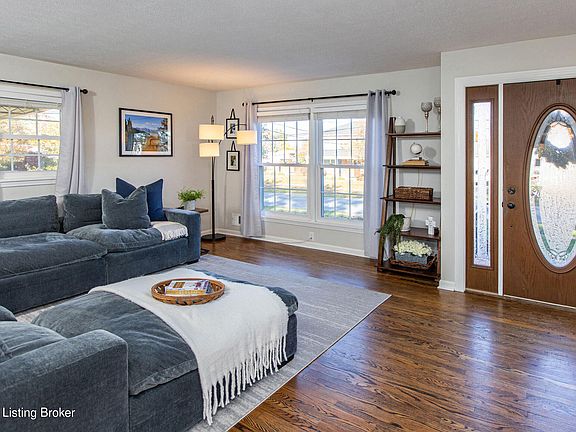Welcome to 2416 Tregaron Ave. This beautifully updated ranch home is stylish, spacious, and tucked away in the desirable Bluegrass Estates Subdivision. This home has an abundance of natural light streaming in and beautiful neutral paint colors throughout. As you enter the front door, you will find a huge open-concept living room and dining area, with gorgeous hardwood flooring, and new light fixtures. The updated kitchen is fully equipped and offers newly painted white cabinetry, granite countertops, white backsplash, and stainless steel appliances. The spacious primary bedroom shares private full bath. Two additional nice-sized guest bedrooms share updated full bath. Enjoy and relax in the spacious finished basement that has an additional familyroom/office/craft room. The unfinished area has plenty of storage as well as the laundry area. The fenced, flat backyard is enormous! It is nicely landscaped and has a lovely private patio, which is perfect for entertaining friends and family. LOCATION, LOCATION, LOCATION!!! This home is in the heart of JTown, which is minutes from shopping, restaurants, expressways, and the new amphitheater set for Veterans Park in Jeffersontown.