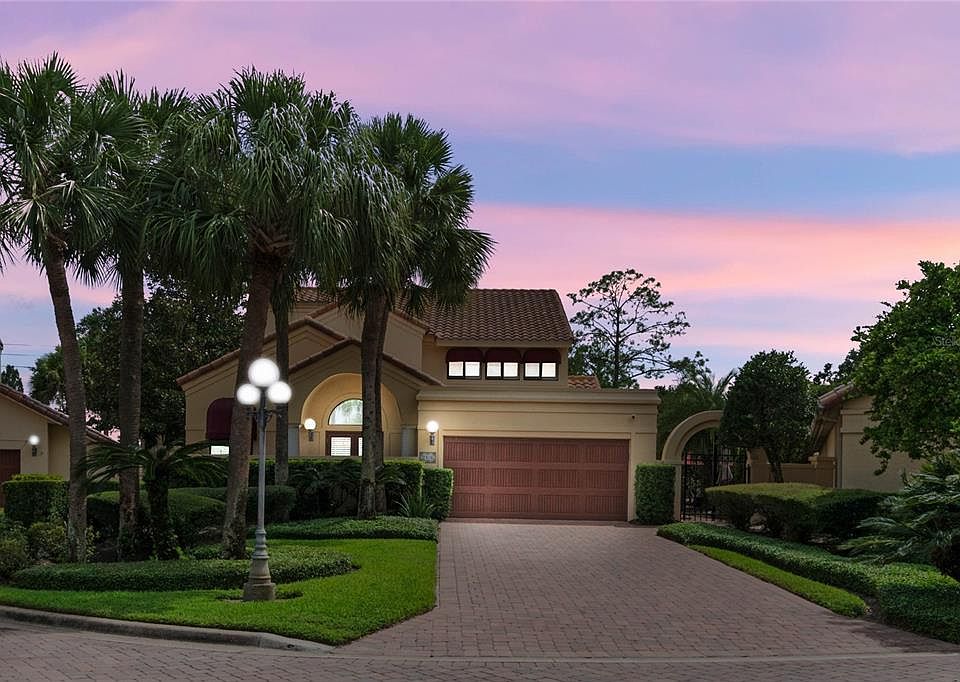 Don't miss this exceptional opportunity to own a Majestic 3-bedroom, 3.5-bath golf-front pool home in the Mediterranean-inspired gated community of Villa D' Este, nestled within the esteemed Sweetwater Country Club. From the moment you set eyes on this exquisite home, its impressive curb appeal will captivate you with its meticulously manicured landscaping, new brick paver driveway, and barrel tile roof. Step through the wrought iron gated archway, & you'll find yourself on a brick-lined walkway within a private courtyard adorned with a two-tiered lion-head water fountain. This enchanting path leads you to double wood-stained doors with side leaded glass panels. This home showcases an open floor plan & soaring vaulted ceilings that bathe every room in natural light. The tastefully decorated living & dining area seamlessly connects to the well-appointed chef's kitchen. This kitchen is equipped with custom cherry cabinets, a stone backsplash, updated stainless steel appliances, & a large granite island with bar seating. The eat-in kitchen opens to a warm & welcoming family room, highlighted by a wood-burning brick fireplace with elegant marble inlay. Stretching up to the 21 ft ceiling, this fireplace is framed on both sides by stained glass windows, creating a truly dramatic focal point. This room also has a built-in wet bar with inlaid floating glass shelves, a stone veneer, & a granite countertop that coordinates perfectly with the kitchen. There's a separate office accessible through double doors. This regal office features include durable bamboo flooring, wood blinds & a built-in entertainment center offering ample storage. Adjacent to the office, you'll find an updated half bath. New top-of-the-line Pella tinted sliding glass doors with built-in blinds and a sliding screen door flood both the kitchen and living room with additional light & offer a fantastic view of the sparkling pool & spa. Stepping onto the private lanai, you'll discover a tropical setting surrounding the pool & spa. The connected courtyard even includes a Sunbrella-covered Gazebo creating a resort-like VIP atmosphere. As the day winds down, retire to your lux owner's suite, which boasts a built-in armoire & entertainment center. French doors lead to a private patio, perfect for savoring your morning coffee or espresso. Then enter the en-suite spa-worthy bath through a grand archway & straight ahead is the striking stone accent wall with a wrought iron chandelier & freestanding Jacuzzi tub. This showstopping bathroom, reminiscent of the Ritz Carlton, features his & her double vanities with elegant marble tops, separated by a built-in makeup table. Opposite the vanities, 2 stylish gray barn doors open to reveal the oversized walk-in closet with custom built-ins & a double laundry drawer. The second door opens to the "marble room."A marbled-wall room with a vaulted ceiling, skylight, a spacious frameless glass shower w/ dual waterfall showerheads, a handheld wand & a Toto toilet. Completing the 1st level is the laundry room w/ a butcher block countertop for folding clothes, overhead cabinets & a built-in laundry sink. Upstairs are 2 large en-suite bedrooms, each with a walk-in closet & updated baths. Additionally, the property includes private ramp access to Lake Brantley & is conveniently located to shopping, restaurants, parks, and area attractions. Call today for a private tour of this one-of-a-kind home.