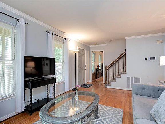 This charming 2 story home with off-street parking sits on a large lot in the near West End. Sun filled living room with wood floors. Spacious eat-in kitchen with breakfast bar. Sun room has wood floors and sliding doors to rear deck. Family room has wood floors, wood burning brick fireplace and access to rear deck. Master bedroom has a newer renovated bath and 2 closets. 2 additional bedrooms upstairs share an updated hall bath. New carpet on stairs and in all bedrooms. 2 sheds and Gazebo give you plenty of storage and outdoor entertaining space.