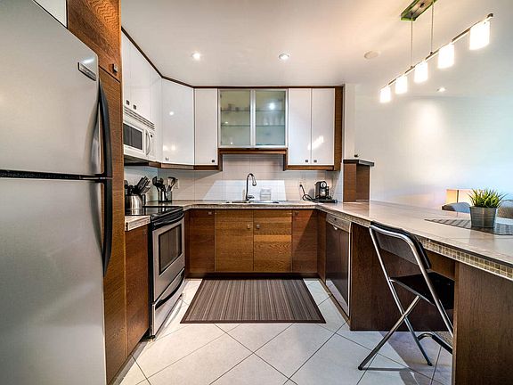 Welcome home to Landmark Reef, a well managed building situated in the heart of Kits, North of 4th! Tastefully upgraded since the renovations in 2010 by previous owner. There is no wasted space in this bright, South facing 1 bedroom & den! Spa bathroom with porcelain tiles, deep soaker tub & rain head shower. Large bedroom with lots of closet space & built in entertainment cabinet that houses a 46' TV. The TV & stereo swivels so it can be enjoyed in the bedroom & living room. The large living room offers access to a covered outdoor deck for year round enjoyment. Also included, a built in work area for the computer, huge in suite storage, storage locker & 1 parking. Contact for your private showing today!