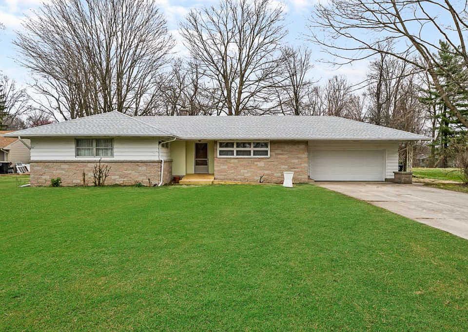 Great opportunity to purchase this immediately available home with a traditional floorplan offering one level living, 3 bedrooms, 2 full baths for 1458 sq. ft. of living space. Set on almost a full acre with mature trees, this property provides plenty of room for outdoor activities, entertaining & gardening. Living room has big picture window with backyard views. A full wall stacked sandstone fireplace creates interest & a beautiful architectural feature. Eat in kitchen is furnished with plenty of cabinetry & sunny windows that face the front. A handy exterior side door provides access right next to the garage. All kitchen appliances remain. The master bedroom has a large closet & private full bath with walk-in shower. Both additional bedrooms are good sized. Plenty of storage space in multiple closets plus 2 car attached garage. Separate laundry/utility room has built in shelves, plus washer & dryer stay. Extra wide driveway for parking flexibility. Schedule your personal tour today! Property to be sold AS IS.