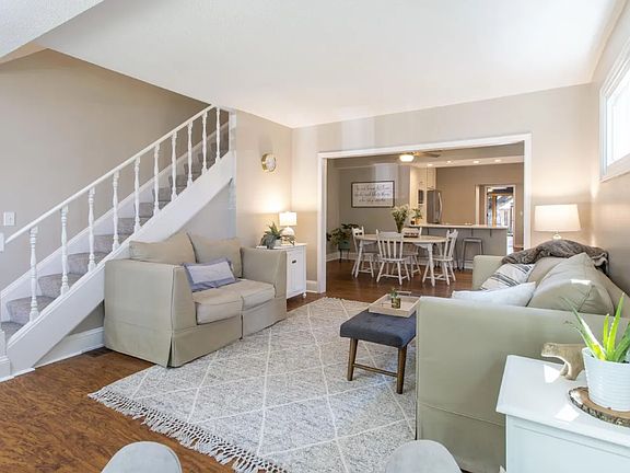 Vinyl floorsCarpeted bedrooms upstairsBright comfortable living spacesStainless steel refrigeratorTons of cabinet spaceTile bathroomsCentral air