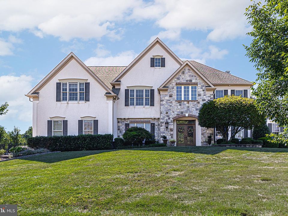 This exquisite 5-bedroom, 4.5-bath home is a true masterpiece of elegance and modern comfort. Situated on over an acre of property, you are greeted by professionally landscaped and hardscaped beauty in one of the most sought-after neighborhoods. As you step inside, you'll be captivated by the architectural design in the foyer, highlighted by the curves of the staircase and the stunning chandelier. The beauty of the hardwood floors flows throughout most of the main floor, with the warmth of carpet insets accentuating and defining the living and dining rooms. A solarium adjacent to the living room is the perfect place for drinks in front of the fire, game nights, a theater room, or anything you wish to create. The great room is a true focal point, adorned with majestic wood beams that accentuate the soaring ceilings, floor-to-ceiling stone details, and expansive windows that allow sunlight to seamlessly flow through. A sleek electric fireplace adds design and ambiance to this inviting gathering space, making it the ideal spot for family gatherings or entertaining guests. The heart of this home is undoubtedly the custom kitchen, where culinary dreams come true. Boasting top-of-the-line appliances, exquisite cabinetry, and luxurious countertops, this kitchen is a chef's paradise. Whether you're preparing a gourmet meal or hosting a casual brunch, there is both beauty and functionality. Step outside, and you'll discover an oasis of relaxation on the covered porch. These outdoor spaces are perfect for al fresco dining, lounging, or simply taking in the serene views of your beautifully landscaped surroundings. Multiple social spaces have been designed in the yard for relaxing in the hot tub, chatting around the firepit, or reading a great book while enjoying the privacy and beauty. The opulence of this home doesn't end there. A finished basement with a full bath awaits your indulgence, complete with a wet bar for entertaining and a full gym for maintaining an active lifestyle. Whether you're watching the big game, mixing cocktails with friends, or working up a sweat, this lower level offers endless possibilities for enjoyment. With 5 spacious bedrooms and 4.5 bathrooms, including a master suite that exudes luxury and comfort, this home provides a retreat for every member of the family. The master bath boasts a soaking tub and glass-enclosed shower, ensuring you can relax and rejuvenate in style. In the sought-after Ridings of Warwick, you'll enjoy a lifestyle of exclusivity, privacy, and convenience. This home is not just a residence; it's a statement of success, a sanctuary of style, and a haven of comfort. Experience luxury living in this breathtaking property, located within minutes of restaurants, shopping, major roadways, and the National Award-Winning Central Bucks School District.
