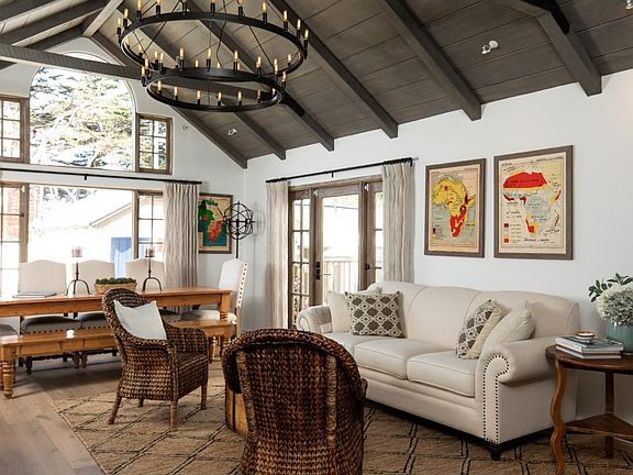Rarely available iconic Carmel Point ocean view home with guest house. Set on a beautifully landscaped 8500sf corner lot, just one house up from the beach. Boasting ocean views from most rooms and panoramic views of Carmel Beach from the oversized rooftop deck. Exquisitely remodeled throughout in 2018, featuring a stunning chef's kitchen, custom climate controlled wine display, hardwood floors, vaulted ceilings, contemporary bathrooms (3 ensuites), and inside laundry. The separate guest house is over 600sf with a full kitchen, fireplace and ocean views. Multiple outdoor entertaining spaces, built-in BBQ, cozy fire pits, raised garden beds and a 1 car garage. Don't miss this wonderful opportunity to own a turn-key home in a spectacular location. **More photos are in the process of being taken, therefore we are missing photos of several rooms including the master bedroom/bathroom. Must see to appreciate.