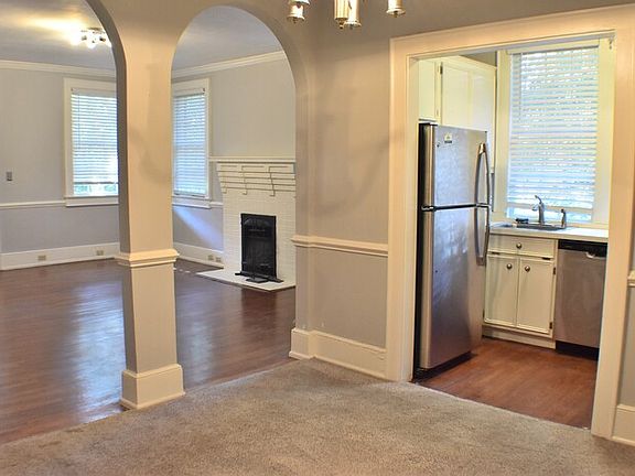 Charming two bedroom, one bathroom unit located right where you want to be with an easy walk to Five Points and USC. Through the front door you will enter into the living which features hardwood floors and a cozy fireplace. Archways lead into the dining room. The efficiency kitchen offers full size appliances. Both bedrooms are a great size and showcase new carpeting. The shared bathroom offers a full vanity with cabinet storage to make sharing a breeze. The laundry closet is in the hallway; central to both bedrooms. On site parking is another great amenity! See it for yourself today! This property allows self guided viewing without an appointment. Contact for details.