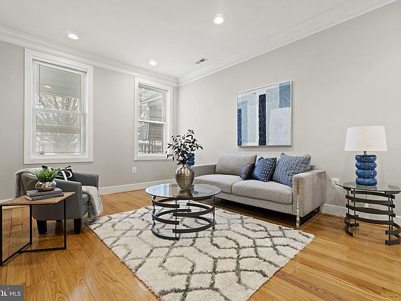 This federal style townhome is sure to delight with its charming front yard and covered front porch. The main level has an open floor plan, accented by oak hardwood floors, coffered ceilings, and elegant crown moldings. The kitchen has shaker cabinetry and an island with seating for two. The stairs to the upper level feature an expansive wall of exposed brick, leading to 3 large bedrooms including a spacious primary with an ensuite bathroom. The lower level can be accessed by the main stairs or through either of its private front and rear egresses and includes a full kitchen and an additional bedroom and bath with high ceilings. This offering is completed by a rear deck and secure parking pad with space for 2 vehicles.