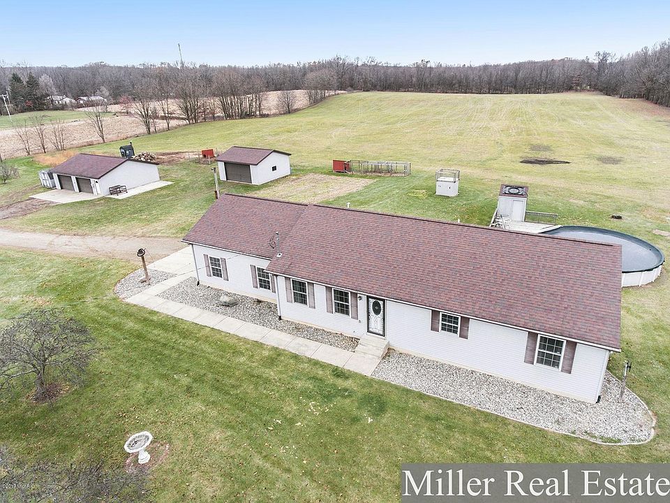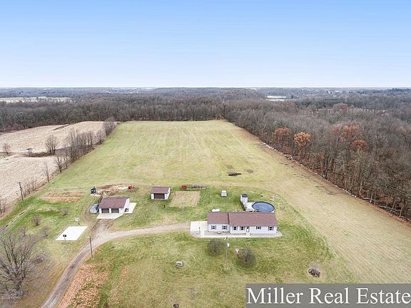 Find some silence, outbuildings and a Move-In-Ready home on a wonderful 23 acre setting. Easily accessible off M-37 Highway, Culver road allows for a picturesque country abode. Pull into your property and find an outdoor wood-burner greeting your fall senses and keeping those dollars in your pocket. This unit heats your large Pole Barn, Furnace to home and Hot Water Heater. Second Pole Barn for storage of all the recreational toys. Step into a 3 Bedroom / 2 Bath home (including Master Suite). Open sight lines from Living to Dining Room and out onto back Deck. Custom hardwood trim and doors, quiet Kitchen for fantastic prep work and maintenance free finishes adorn the Main Level. Downstairs find a large finished Family Room, bonus room and storage all within a full walkout feature!