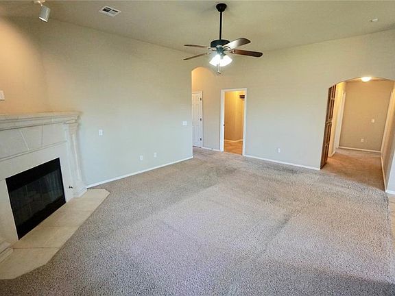 Beautifully maintained home with a great open floor plan. Master bedroom separate from the other bedrooms. Master bedroom has bay window, ceiling fan, full bath suite w/ double vanities, australian closet, tub. Outstanding living area with corner fireplace, ceiling fan - open to dining. Kitchen w/ built in smooth top electric stove, builtin microwave, dishwasher, pantry. Covered patio, double-pane tilt in windows and storm door. Security system.
