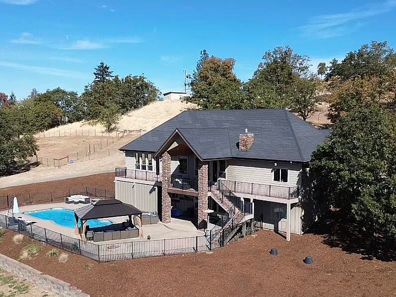 Step outside to your personal oasis with a heated pool. Equestrian enthusiasts and hobby farmers will be delighted by the outdoor riding arena and new barn, equipped with 3 horse stalls, a tack room, hay storage, and multiple small animal stalls, which can be converted into additional horse stalls as needed. The property also boasts a large two-story shop for all your storage and workshop needs.