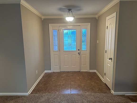 What a beauty!!! All brick home with four big bedrooms with split plan. BRAND NEW CARPET just installed!! Fireplace with gas logs in living area and HUGE kitchen with custom rich stained cabinetry in kitchen. So many cabinets! Home has NEW fresh paint throughout even in the garage! Covered patio and fenced back yard. Come enjoy the simple life and easy commute to freeway.
