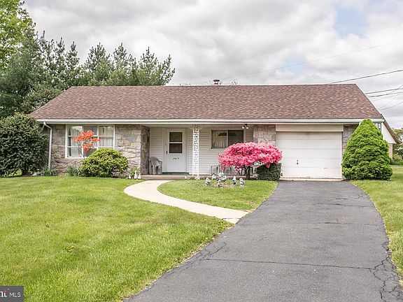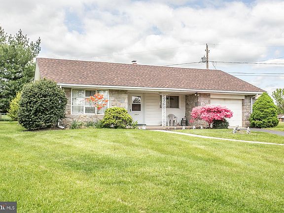 Lovely West lawn community rancher conveniently located to major roads and shopping. Enter from the large covered front porch into a roomy foyer with guest closet. This home features an open Living room and Dining room with a brick fireplace and hardwood floors. From the living room is a sliding door to the rear covered patio. The eat in kitchen needs to be modernized but is a nice size and has recessed lighting. There is a hall bath with large shower stall and 2 hall closets, one for linens. Both bedrooms are nicely sized and have lots of closet space. Off the attached garage is a combo laundry room / powder room. Although the home features Central Air it also has a whole house fan for those days when the Central Air isn't needed.