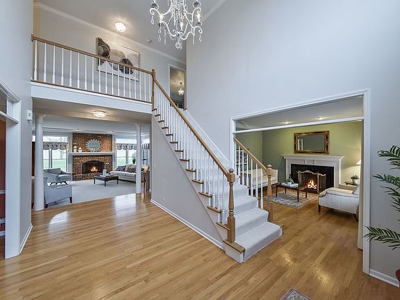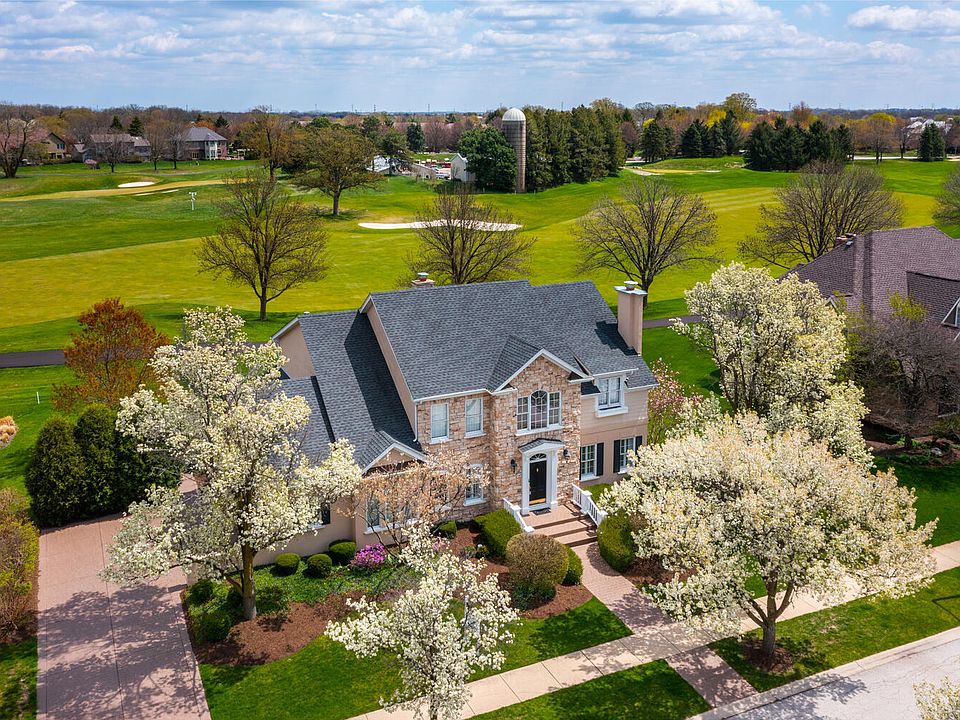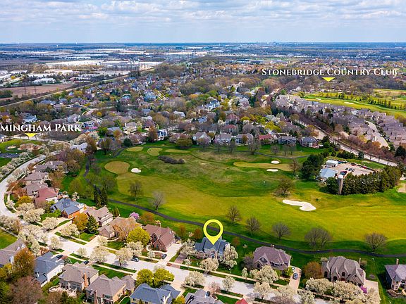 One-of-a-kind Stonebridge home with spectacular golf course views of the 7th fairway! Enter to an expansive 20X20 hardwood 2-story foyer filled with custom millwork, and transoms. Just off the foyer is the spacious dining room and a living room that features a marble surround gas fireplace. Family room has another floor-to-ceiling brick front fireplace and a wall of windows with views straight out to the golf course. French doors lead to a private office with a wall of built-ins just off the family room. Updated kitchen includes Caesarstone quartz countertops, custom backsplash, island with seating, stainless appliances including cooktop, elegant eating area with chandelier. Utility/laundry room located just off the side load garage and centrally located powder room on the main level. Dual staircases, front and the back of the house take you to the upper level. Generous size master suite with tray ceiling, walk-up attic with additional insulation, spa like marble bath with new fixtures, dual vanity and whirlpool, freshly tiled shower, sizeable walk-in closet. Three more spacious upper-level bedrooms, two with a jack and jill bath between and the third with its own en-suite bath, 3 upper baths total! In addition, there is a walk-in attic off the second level that could be easily finished into an additional bonus space. Basement offers an expansive recreation area and loads of storage space. Crisp white trim throughout as well as fresh paint in today's popular color palette in the main living areas and master bedroom. So many "news and newers" in this meticulously maintained home include furnace and air (2021), humidifier (2022), chimney cap (2020), carpet in family room/office/entire upper level (2022), garage doors and openers (2019) patio/driveway/front walkway repainted (2022), hardwood refinished (2015), sump pump (2015), awnings across back of home (2012), tuckpointing interior fireplace (2021), plantation shutter and curtains in front (2019), window treatments kitchen and family room (2018), kitchen updates and basement remodel (2015), master bath updates with redone shower (2022). Exterior has been completely checked with tuckpointing done on the stone as well (2021). Entire back of the home has custom awnings as well as a retractable awning over the patio that features tremendous golf course views. Award-winning 204 schools all within 1.5 miles, close to Rt. 59 train station, and shopping. Live your best family life in this beautiful place to call home!