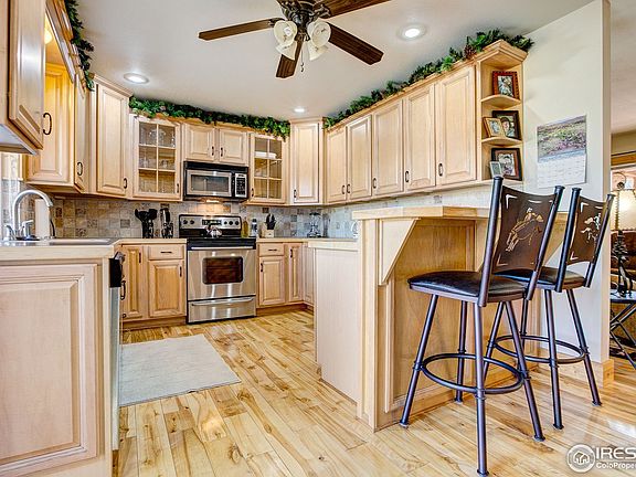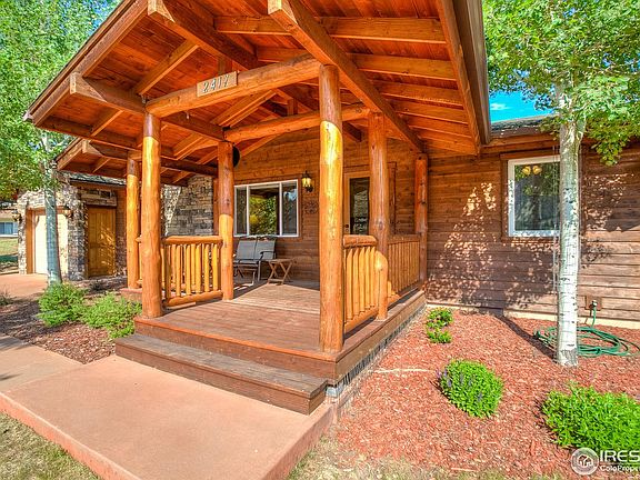Ranch style home features two Bedroom Suites, Office or Den (or even if 3rd Bedroom if needed), two bathrooms, one car garage and large laundry room with cabinetry and extra refrigerator Entire home was completely gutted and remodeled with an addition in 2007 with high quality materials Exterior craftsmanship is elegant and in excellent condition with log beams, stone, wood siding, stained concrete driveway and entry walkway Remarkable Birch wood flooring throughout home is in excellent condition Two Bedroom Suites, both complete with walk-out deck, 5-piece Bathrooms with ceramic tile, walk-in closets ~ Master features cathedral, log beam ceiling Office / Den could also function as guest room or 3rd bedroom, a lovely space with French doors Large back deck off both the Kitchen, and Bedroom has composite deck and railing ~ perfect to enjoy the view and star filled night skies from Gas fireplace with sandstone surround, hearth, and mantle shelf ~ a new addition to the Living Room Spacious Kitchen with gorgeous granite countertops, ceramic tile backsplash, Hickory cabinetry, island style bar with comfortable high back chairs, stainless appliances, expansive cabinetry and small built-in desk area Separate Dining Room has a beautiful log beam accented entry, and opens to Living Room and Kitchen Large covered front porch entry with high quality storm door, log beams & railing, cathedral ceiling ~ lovely and functional to add an outdoor space protected from the elements Level lot is landscaped with aspens, low water shrubs and perennials, native grass, pine trees, and includes a fenced garden area with raised beds Located near walking & biking trail on Fish Creek that leads into Downtown, and around Lake Estes Carriage Hills neighborhood has walking trail around the pond and wetland, enjoy the open space and playground available for residents Septic will be pumped prior to closing & possession for new owner One level living and thoughtful open floor plan is perfect for gatherings, yet still provides the intimacy desired in full or part time living Elegant home is exceptionally maintained and low maintenance Large detached shed has electricity and lawn tools ready to use