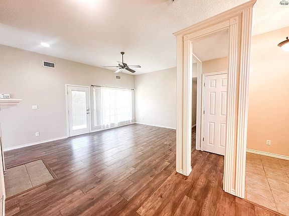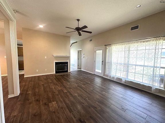 3 Bedroom, 2 Bath home close to SAFB! Tiled entry way w/crown molding columns. Formal dining area is open to living area with engineered hardwood flooring, recessed lighting & gas fireplace. Kitchen has ample cabinet space, built-in wine rack, bkst bar and breakfast area. Primary suite with decorative ledge-bathroom has double sinks, soaking tub, separate shower & 2 walk in closets. Nice size backyard with rear entry garage. Burkburnett Schools. Possible VA assumption loan with 2.75 interest rate!