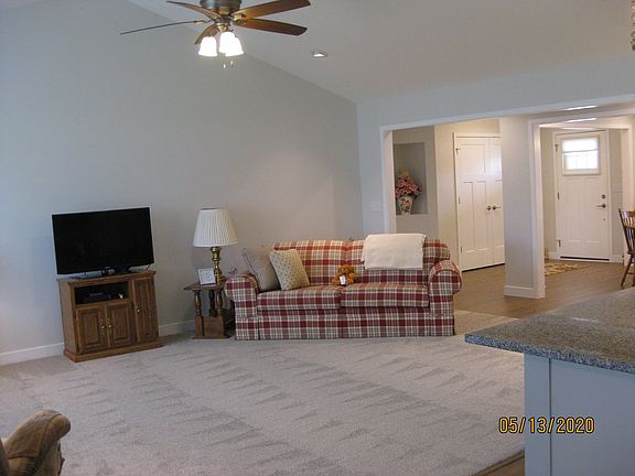 If you have the desire but not the patience to build, take a look at this 2 year old, Monroe-built ranch. This lovely ranch has over 1800 sq. ft. and is "spotless" The white woodwork/cabinetry sparkles and the vaulted ceiling in the great room provides a wonderful, spacious living area. The pretty kitchen includes a bar area, an adjacent dining area, newer appliances, pantry and solid surface counter tops. There are three nice sized BRs. The MBR has all the extras--Large walk-in closet, large titled walk-in shower, double sinks, lighted shelf area and a vaulted ceiling. The present owner chose to make many updates that you may not notice until you realize how easy they make your life. These include : extra outlets , reverse osmosis water system, pull down stairs and a partially floored attic, self-closing drawers, pretty paneled doors, ect. There are covered front and back porches-- back porch is accessed through attractive patio doors and could easily be enclosed and a 2 car attached garage. The window coverings are attractive and like new. This home is 2 yrs. old but the owners have only spent about 6 months as residents. We use this term a lot, but it really is "Like New!" and in a very convenient location. Take a look!!