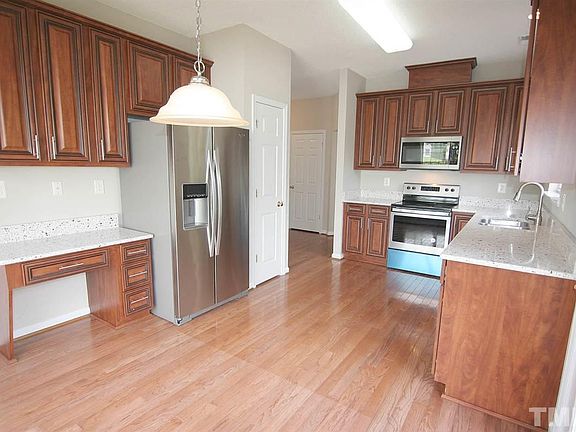 Move-In Ready & Immaculate End Unit w/2 Car Garage! Tons of updates including fresh paint, new carpet & new kitchen range. Bright & light family rm w/corner gas log fireplace, bay window & TV niche. Spacious kitchen boasts quartz counter tops, stainless appliances, desk, lots of cabinet space & breakfast area. 1st Fl dining rm makes a great office too! Large master suite has vaulted ceiling, jacuzzi tub & dual sink vanity. Convenient 2nd Fl. laundry rm.Convenient to 540, retail, dining, & greenway trails.