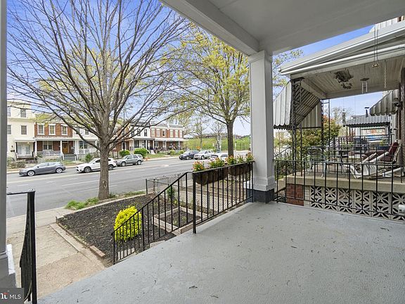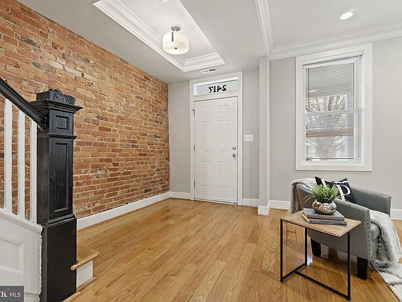 This federal style townhome is sure to delight with its charming front yard and covered front porch. The main level has an open floor plan, accented by oak hardwood floors, coffered ceilings, and elegant crown moldings. The kitchen has shaker cabinetry and an island with seating for two. The stairs to the upper level feature an expansive wall of exposed brick, leading to 3 large bedrooms including a spacious primary with an ensuite bathroom. The lower level can be accessed by the main stairs or through either of its private front and rear egresses and includes a full kitchen and an additional bedroom and bath with high ceilings. This offering is completed by a rear deck and secure parking pad with space for 2 vehicles.