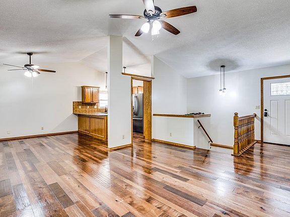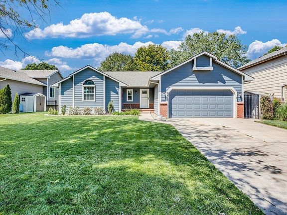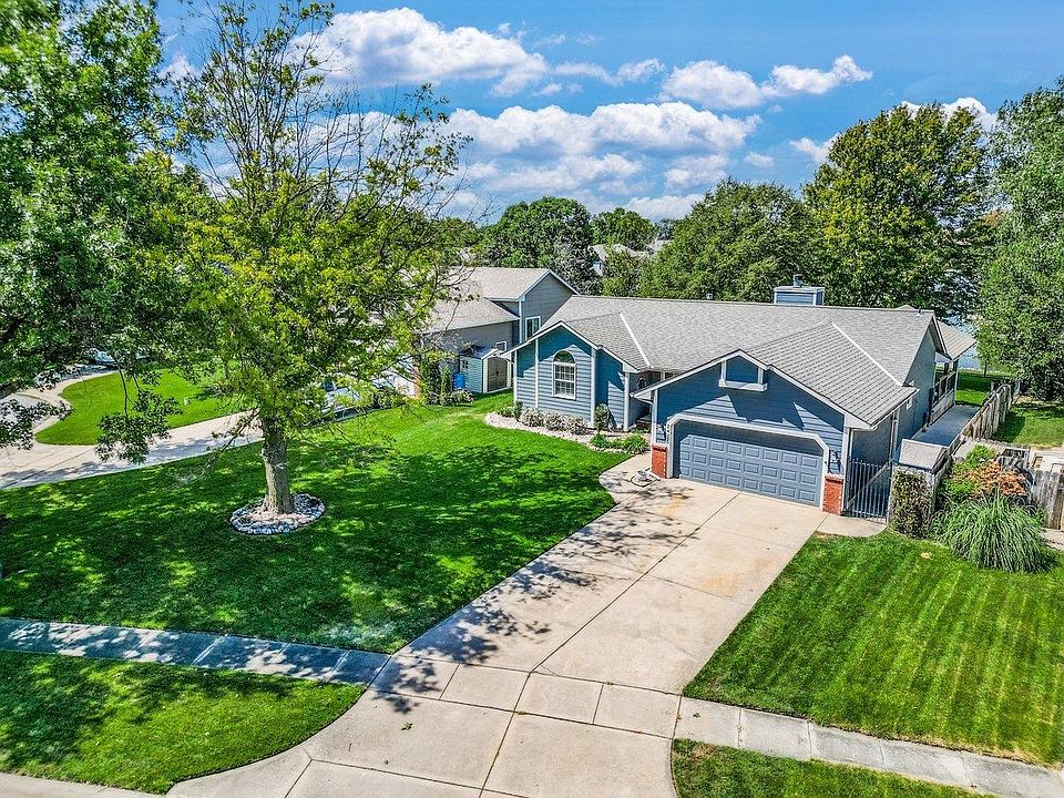 This stunning home is located in the highly sought-after Maize School District and offers exceptional curb appeal with its partial brick exterior and beautiful water views. As you enter, you'll notice the gleaming hardwood flooring and vaulted ceilings throughout the living areas. The inviting living room features a cozy fireplace and access to an amazing covered back deck, perfect for enjoying the serene water views. The dining area is thoughtfully positioned in front of bay windows, allowing for lovely views while you dine or entertain. The kitchen is a chef's dream, boasting granite counters, abundant counter space, a pantry, and an eating bar peninsula. The master bedroom is a retreat with its vaulted ceiling and en suite bath, complete with a double vanity and shower. Two additional bedrooms and a second full bath are conveniently located on the main floor. The basement, recently renovated with new flooring, paint, trim, lights, and a new bathroom, offers a spacious family room and rec room, complete with an alcove that could be a charming reading nook or other versatile space. Additionally, the basement includes a fourth bedroom, ideal for guests or as a spacious second master suite. The expansive covered deck is perfect for outdoor gatherings, overlooking a large, fully fenced backyard with water views and shade trees on a nearly quarter-acre lot. Situated in a quiet neighborhood, this home is also conveniently close to shopping and dining at NewMarket Square, parks, and entertainment. Don't miss out on the opportunity to see this exceptional property—schedule your private showing today before it’s gone!